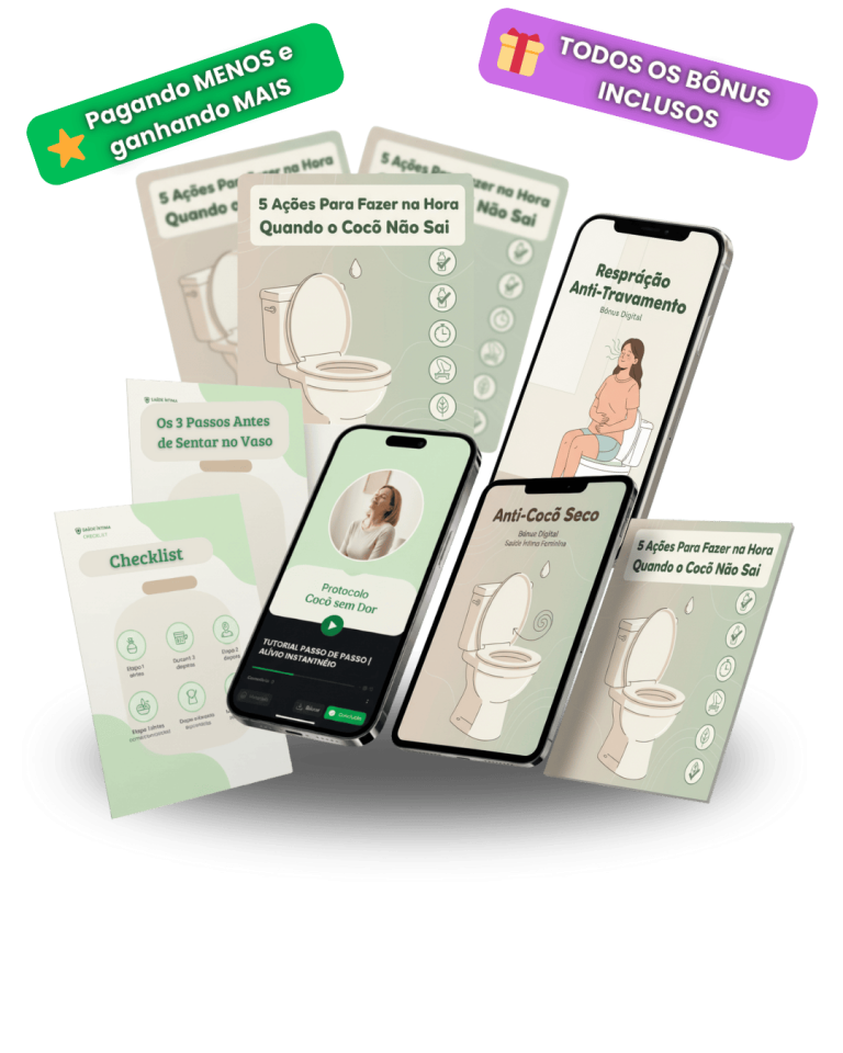 Sim. O protocolo foi criado justamente para quem sofre com fezes duras, dor ao evacuar e medo de sentar no vaso. Você aprende o que fazer antes, na hora e nos dias difíceis.